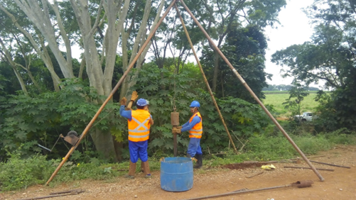 Sondagem à percussão, para determinação das camadas litológicas, resistência do solo e profundidade do nível freático, utilizado para projetos de construção civil.